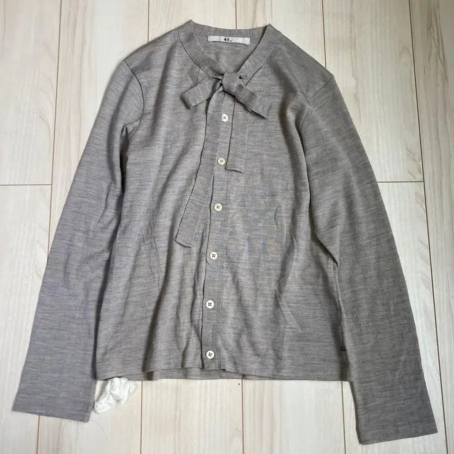 45r 보타이 리본 울 가디건 M 손세탁 가능 베이지 그레이 니트