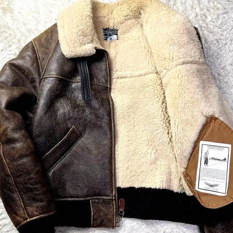 ★ AVIREX 아비렉스 B-6 B-3 무스탕 자켓 무스탕 가죽 자켓 봄버 자켓 보아 양가죽 시프스킨 레더 골드 금장 장식 빈티지 구제 의류 레어