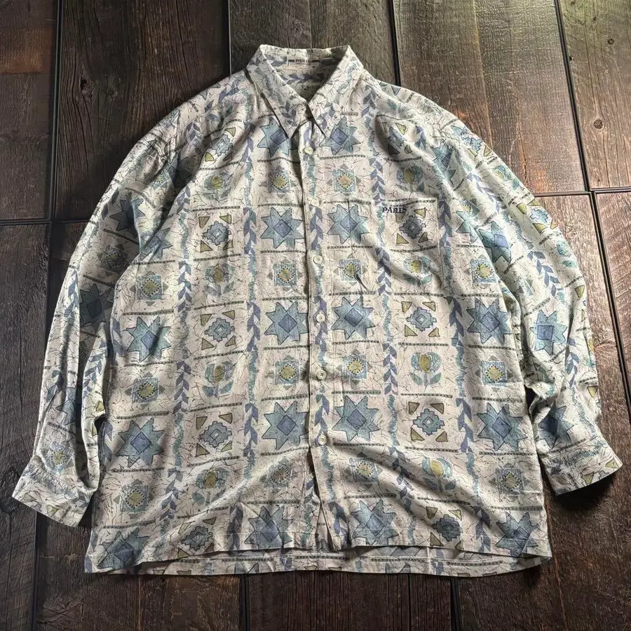 올 패턴 화이트 베이스 화이트 블루 패턴 화려한 무늬