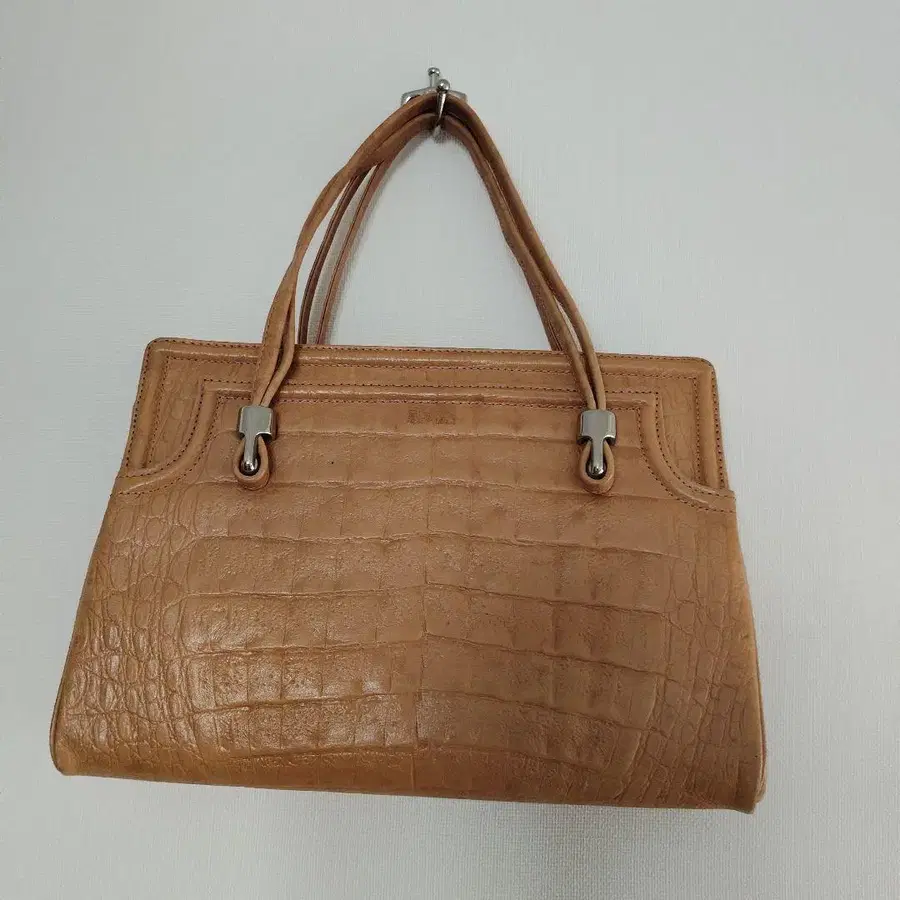 • 악어 엠보싱 핸드백 브라운 골드 금장 장식