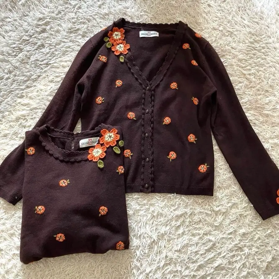 갤러리 비스콘티 캐시미어 꽃무늬 자수 앙상블 다크 브라운