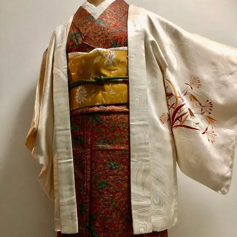 크리스마스 코디 2 꽃무늬 자수 겉옷과 코몬 순수 실크 앤티크 세트