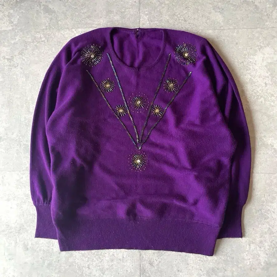 비즈 자수 니트 풀오버 스웨터 쇼와 레트로 레트로 Vintage 빈티지 클래식 퍼플