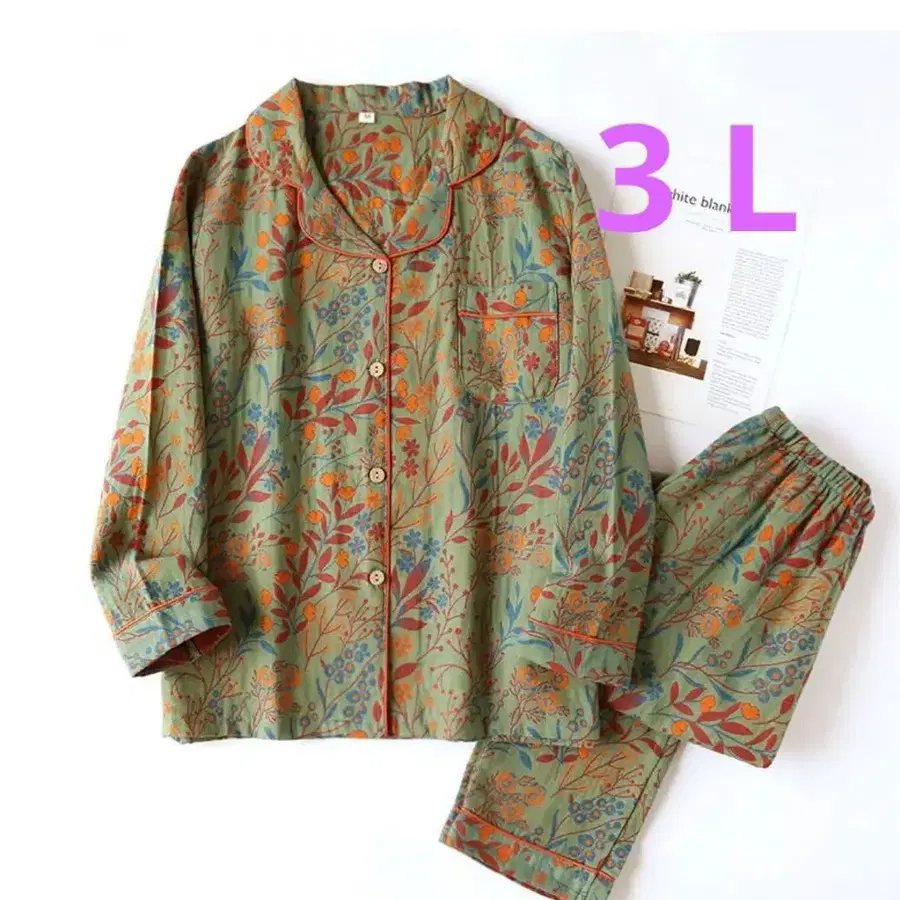 꽃무늬 코튼 파자마 세트 면 100% 더블 거즈 파자마 3L