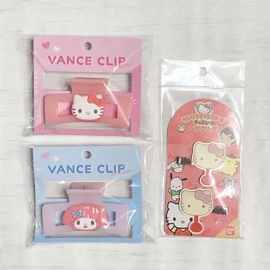 산리오 키티 마이멜로디 바나나 클립 & 헤어 클립 3종 세트