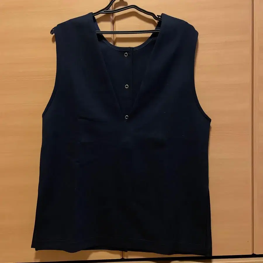 네이비 V넥 디자인, 버튼이 달린 베스트.