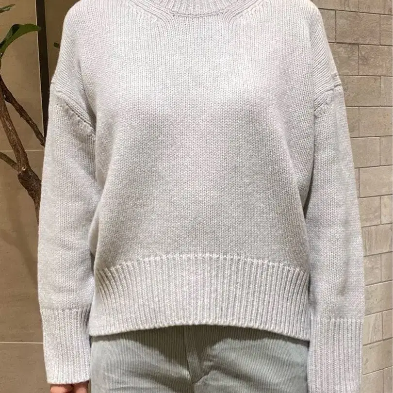 화이트 크루넥 니트 스웨터