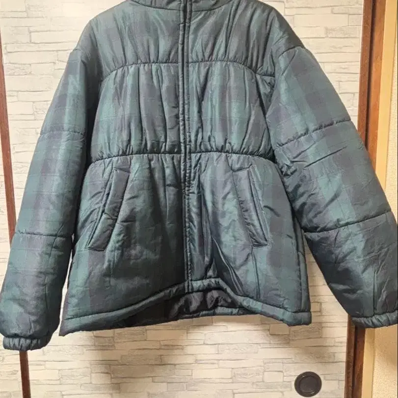 그레일 다크 그린 체크 무늬 다운 자켓 F