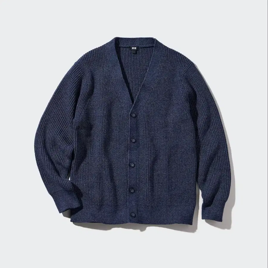 새상품 유니클로 미들 게이지 V넥 가디건 니트 블루 L