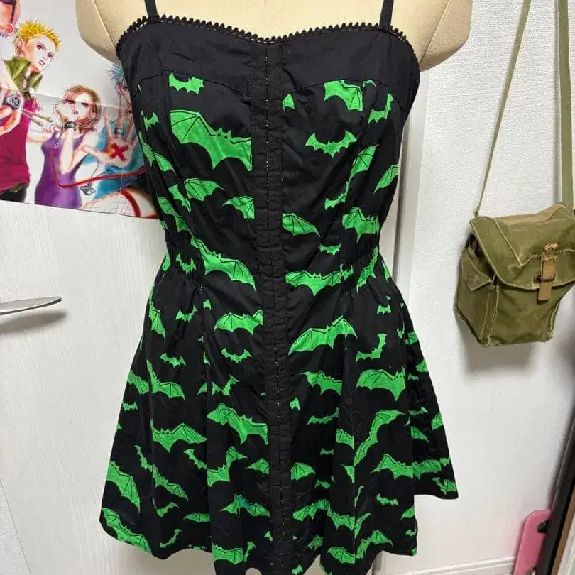 Hell bunny 박쥐 패턴 슬리브리스 미니 원피스 고딕