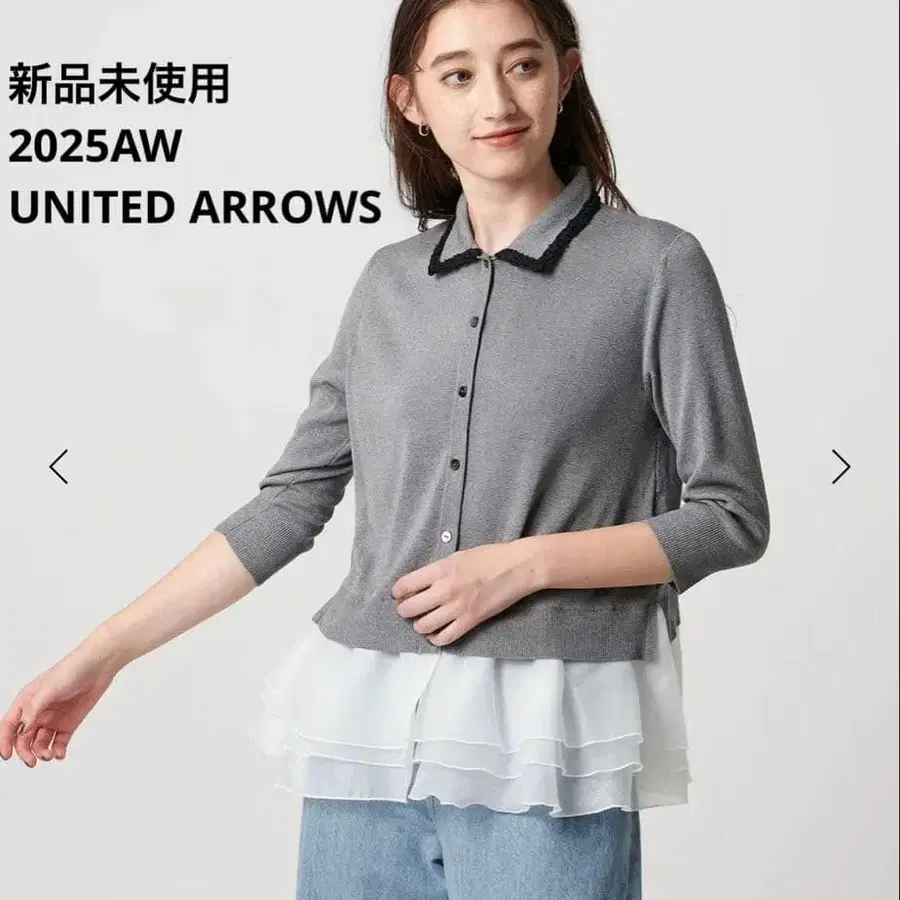 새상품 UNITED ARROWS 레이디 폴로 콤비 니트 워셔블