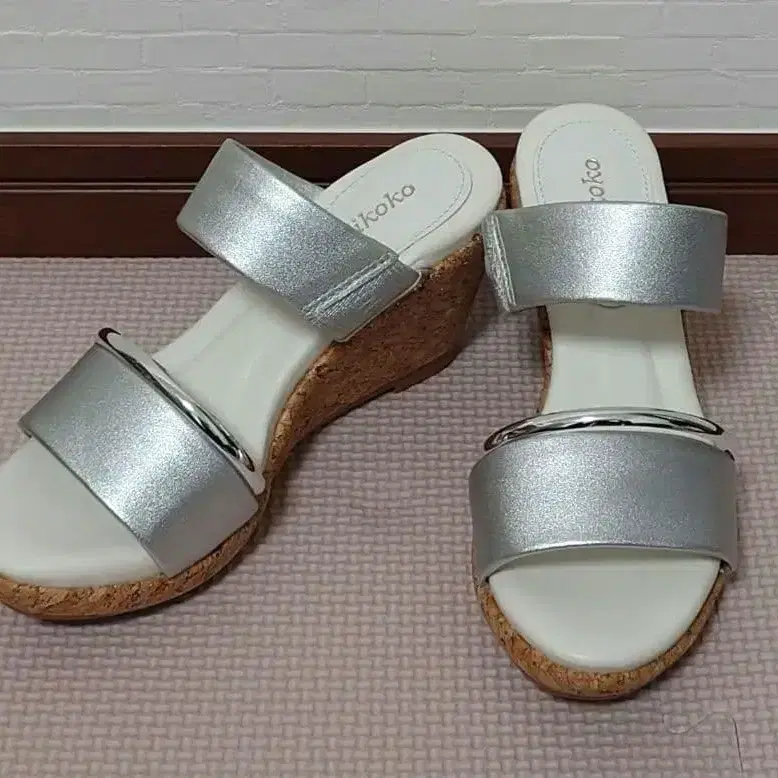 베리코코 미사용#여성용 웨지솔 샌들 실버 21.0cm