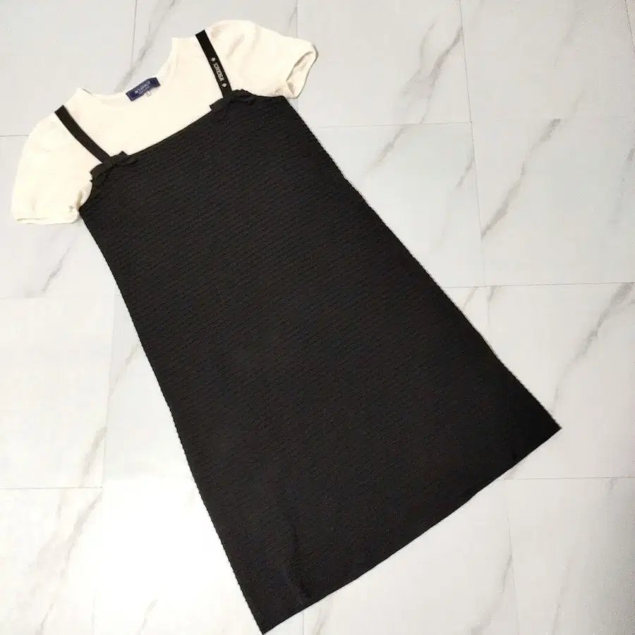 M'S GRACY 리브 블랙 무릎 기장 원피스 리본 반팔 40
