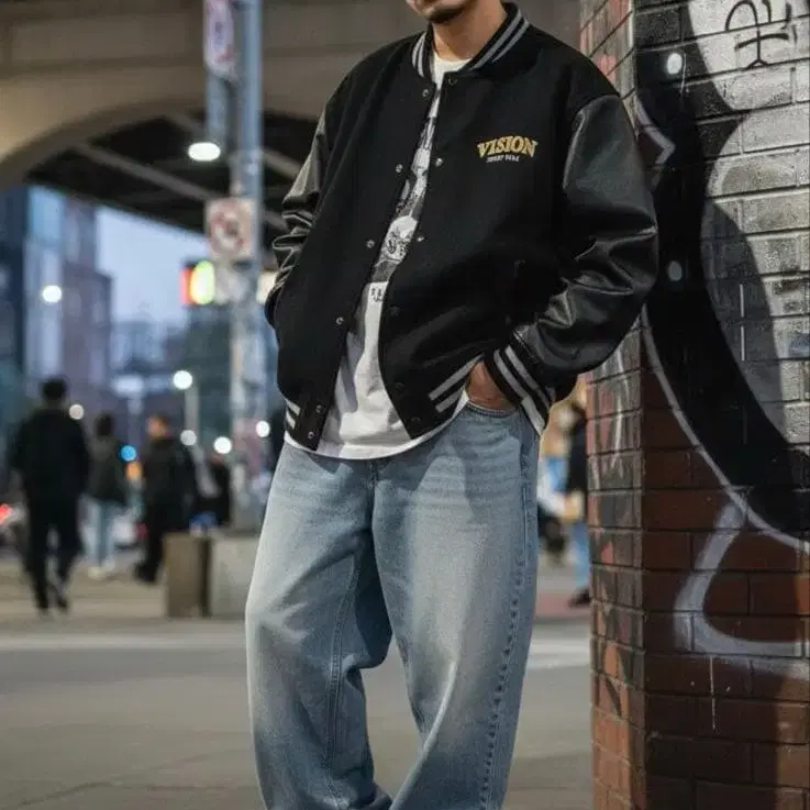 VISION 바시티 자켓 자켓 블랙 자수 와펜 스트릿