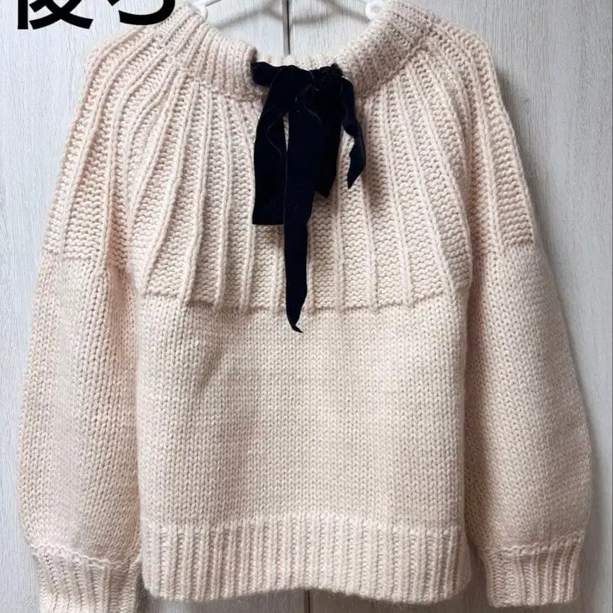 DSC. 백리본 멜란지 니트 핑크 니트 리본 더블 스탠다드