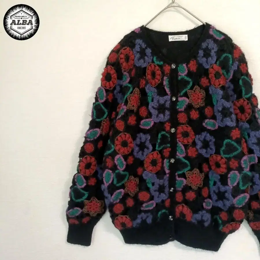 [새상품급] 니트 가디건 스웨터 꽃무늬 시스루 니트 걸리시 블랙