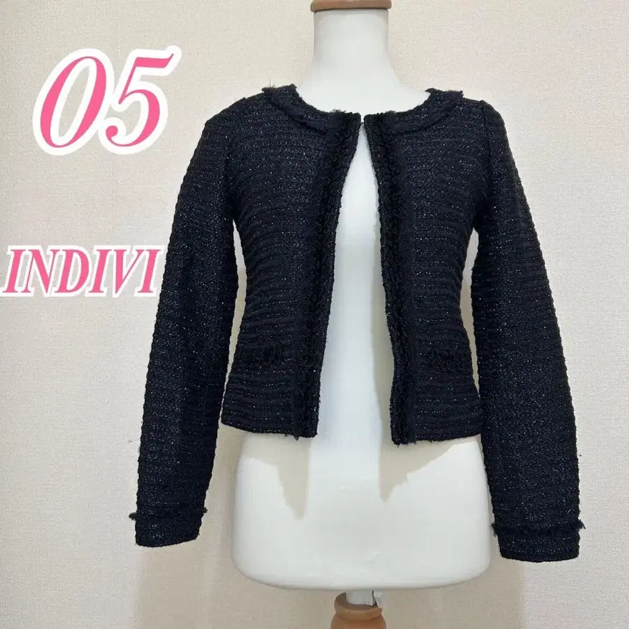 INDIVI 네이비 노카라 자켓 트위드 깔끔한 코디 오피스