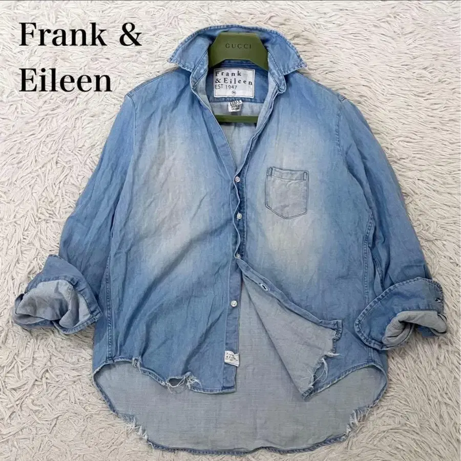 새상품급 프랭크앤아이린 데님 셔츠 긴팔 데미지 가공 파랑 XS