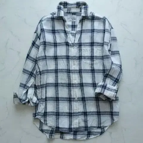 레리움 린넨 스키퍼 셔츠 체크 화이트 네이비