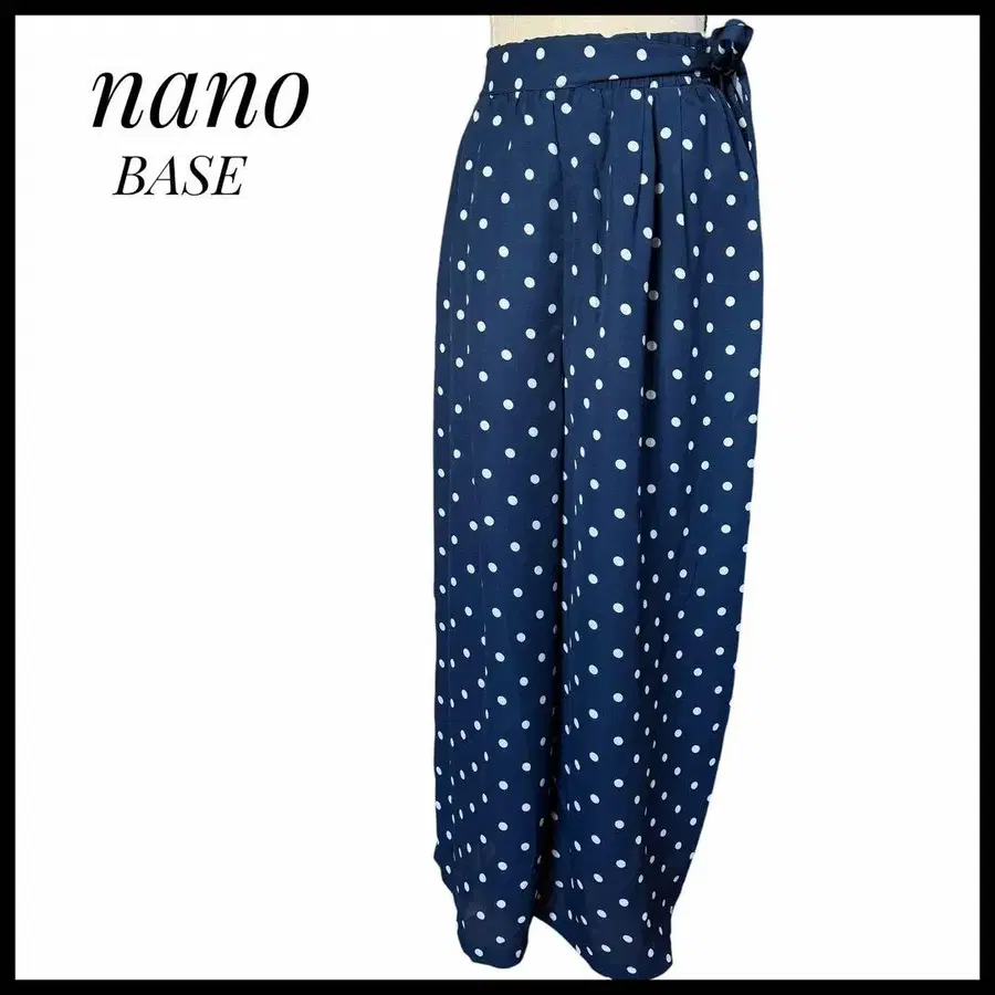 nano 나노 네이비 물방울 패턴 와이드 팬츠 벨트 끈 포함 도트 팬츠