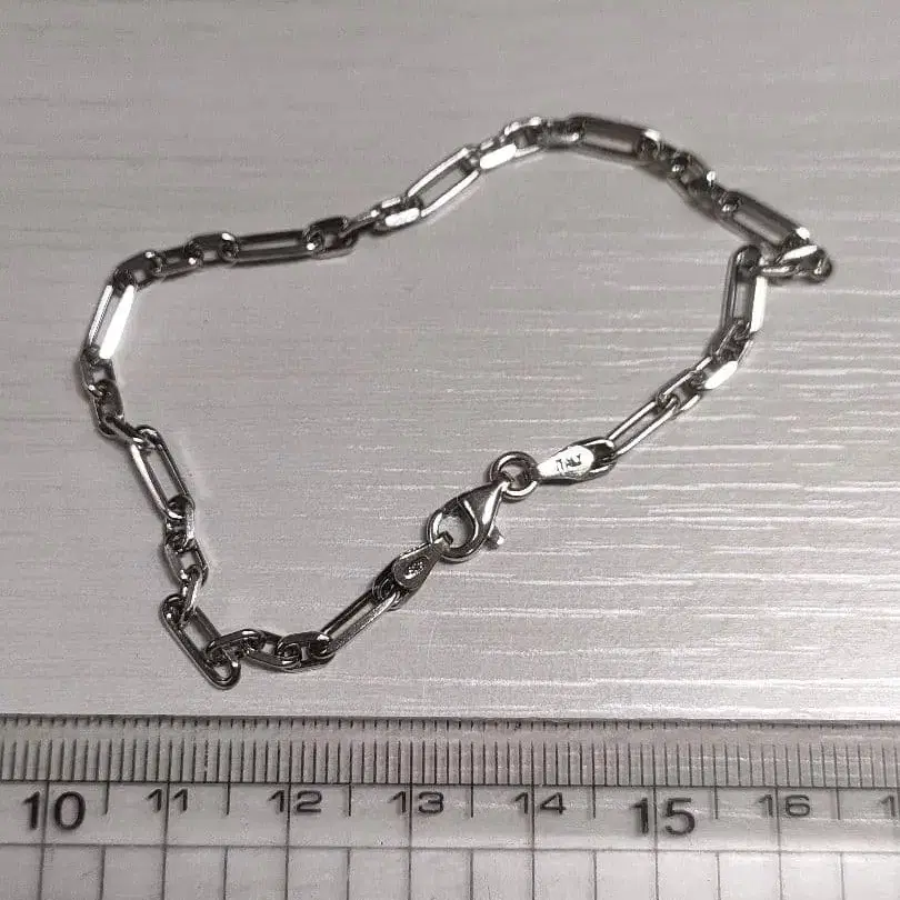 실버 925 변칙 컷 팥 체인 팔찌 19.5cm 폭 3.5mm 4.5g