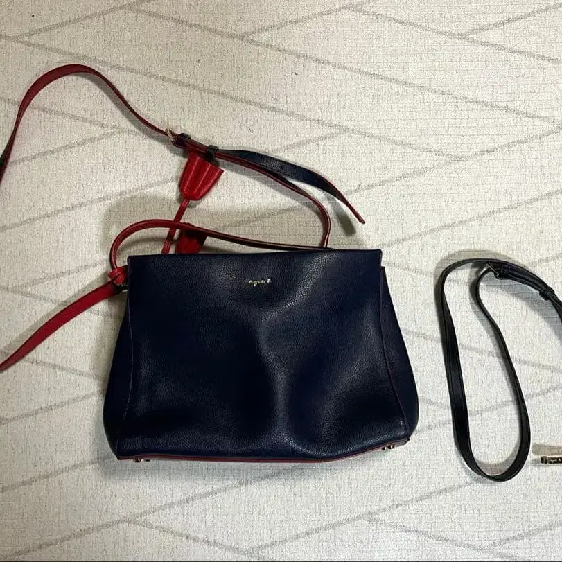 Agnesb 에네스베 네이비 레드 숄더백 교체용 끈 포함