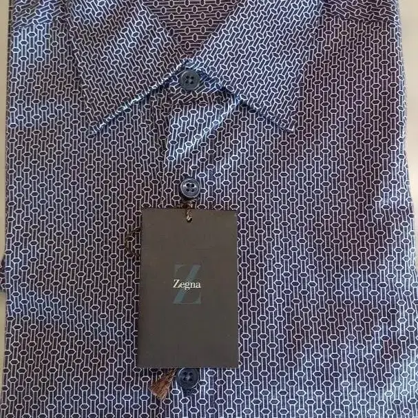 Zegna 네이비 기하학 패턴 드레스 셔츠