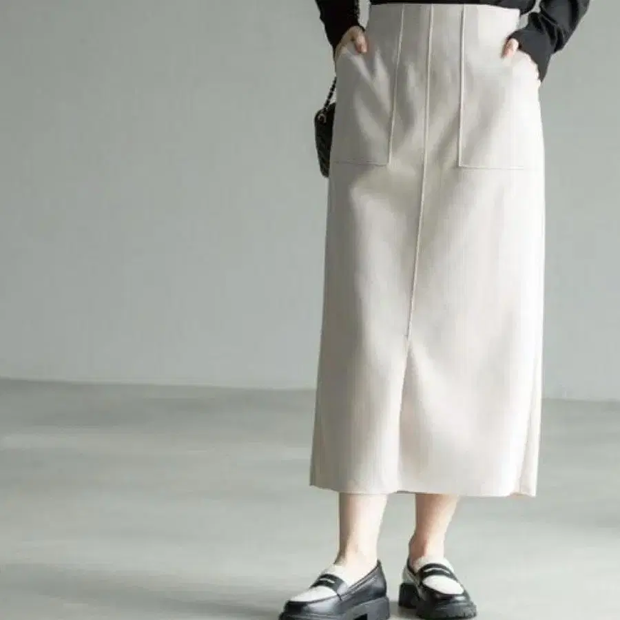 울 느낌의 니들 저리 소재를 사용한, 아름다운 실루엣의 인기 타이트 스커트
