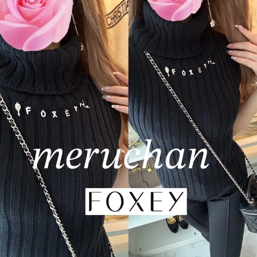[새상품급] FOXEY 로고 참 포함 터틀넥 슬리브리스 니트 상의