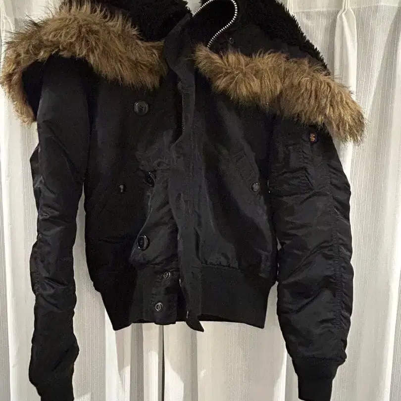 블랙 MA-1 플라이트 자켓 퍼 포함