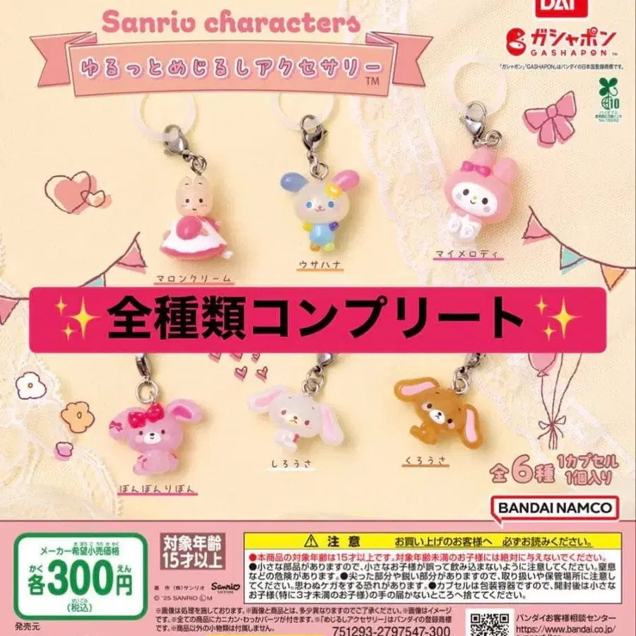산리오 캐릭터 윳토 메지루시 액세서리 전 6종 컴플리트 컴프