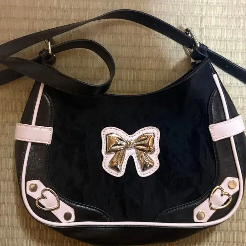 하트 x 리본 숄더백 블랙 핑크 귀여운 지뢰계