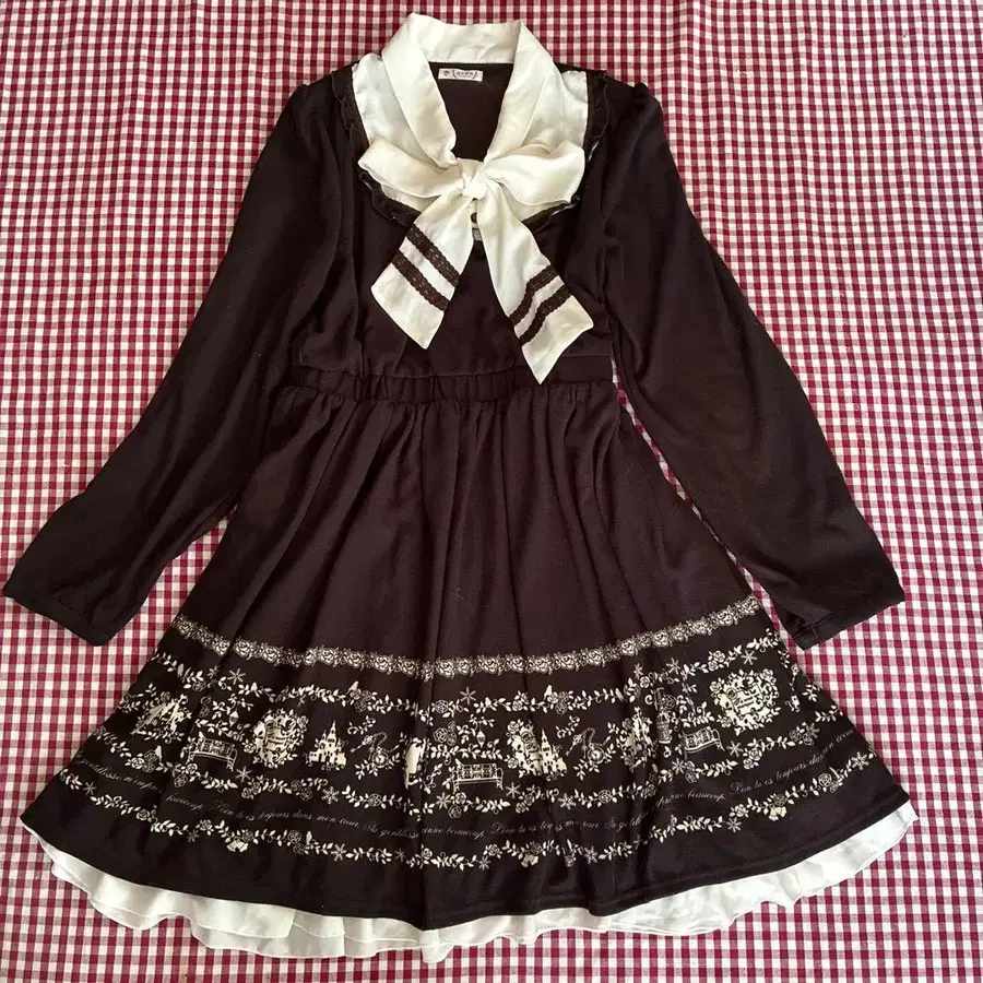 axes femm 액시즈 리본 포함 브라운 플레어 원피스