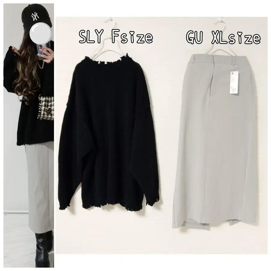 코디 세트 데미지 루즈 니트 롱 스커트