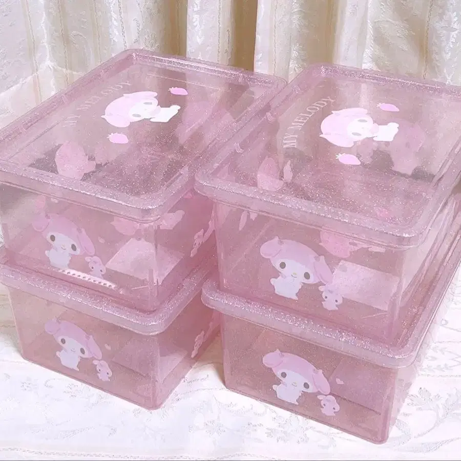 산리오 마이멜로디 뚜껑 포함 보관 케이스 딸기 S 사이즈 4점