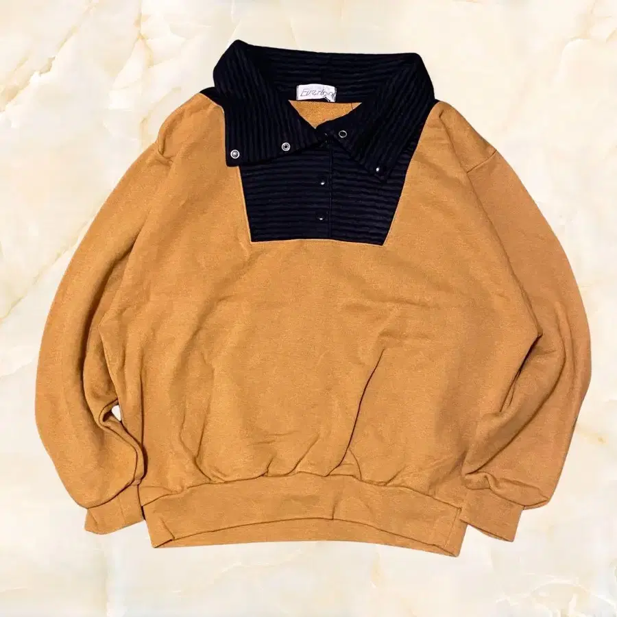 이종 소재 절개 디자인이 눈길을 끄는 맨투맨 상의입니다.