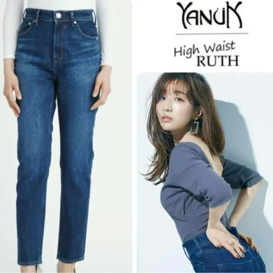 새상품급 야누크 RUTH 하이웨스트 슬림 테이퍼드 데님 26
