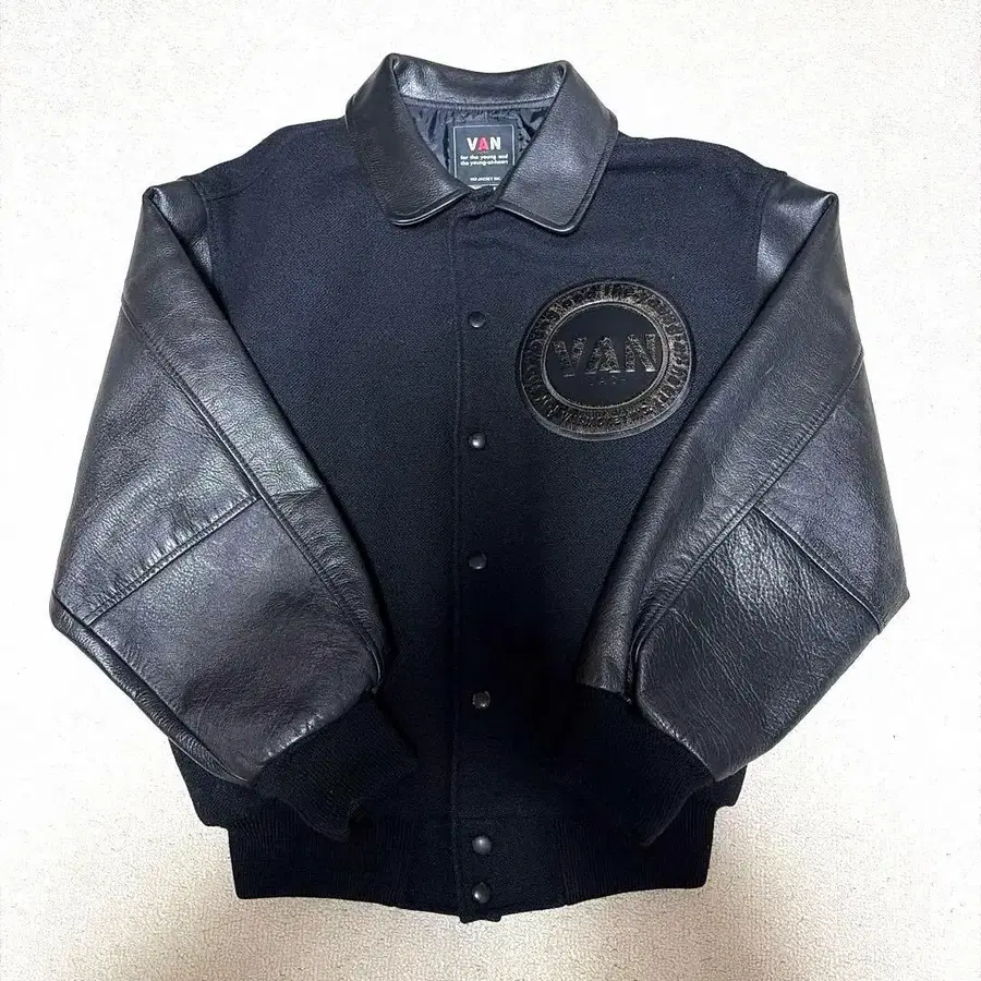 바시티 자켓 VAN 레어 모델 가죽 소매 블랙 BIG ONE