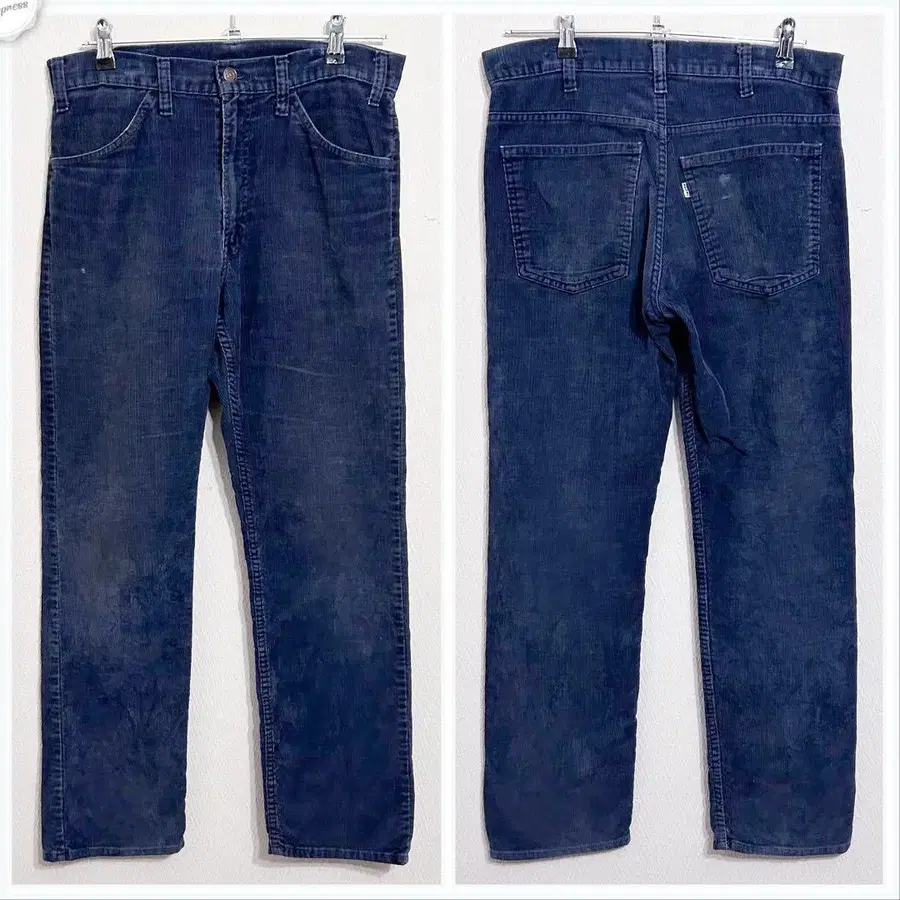 (VINTAGE) 80s USA 제조 리바이스 519 코듀로이 팬츠 네이비 탈론 ◾︎ 사이즈: 판독 불가 ◾︎ 실측치수 (이하 평평하게 놓음 기준) 허리_40cm 힙_24cm 허벅지_29cm 밑위_24cm(+벨트 4cm) 인심_71cm 아웃심 길이_93cm(+벨트 4cm) 밑단 폭_19cm 실측치수 남성용 XS, 여성용 L 정도? ◾︎ 소재: 코듀로이 ◾︎ 색상: 네이비 ◾︎ 상태: 빈티지 ◾︎ 기타: 로켓 Talon 42 지퍼, 버튼 뒷면 539, 80s 내부 종이 택 ◾︎ 빈티지 애호가들에게는 익숙한 코듀로이 팬츠입니다. 그중에서도 수량이 적은 스트레이트 레그의 519입니다. 내부 종이 택을 읽을 수 없어 자세한 내용은 알 수 없지만, 버튼 뒷면 539이므로 멤피스 공장제입니다. 멤피스는 84년에 폐쇄되었으므로 84년 이전 모델입니다. 세월의 변화에 따른 페이드감, 사용감, 파커링의 구김 등 구제 의류적인 가치관을 좋아하시는 분이라면 딱 맞는 한 벌입니다. 길이도 짧은 편이라 여성 빈티지 의류를 즐겨 입는 분들에게도 추천합니다. 이런 옷을 자연스럽게 입으면 반할 거예요. [ 상태에 대하여 ] 빈티지이므로 사용감, 작은 데미지, 색바램 등이 있습니다. 구제 의류나 빈티지에 익숙하신 분이라면 문제가 없겠지만, 놓친 부분이 있을 수도 있으니 어디까지나 구제 의류, 빈티지 제품으로 이해해 주시기 바랍니다.