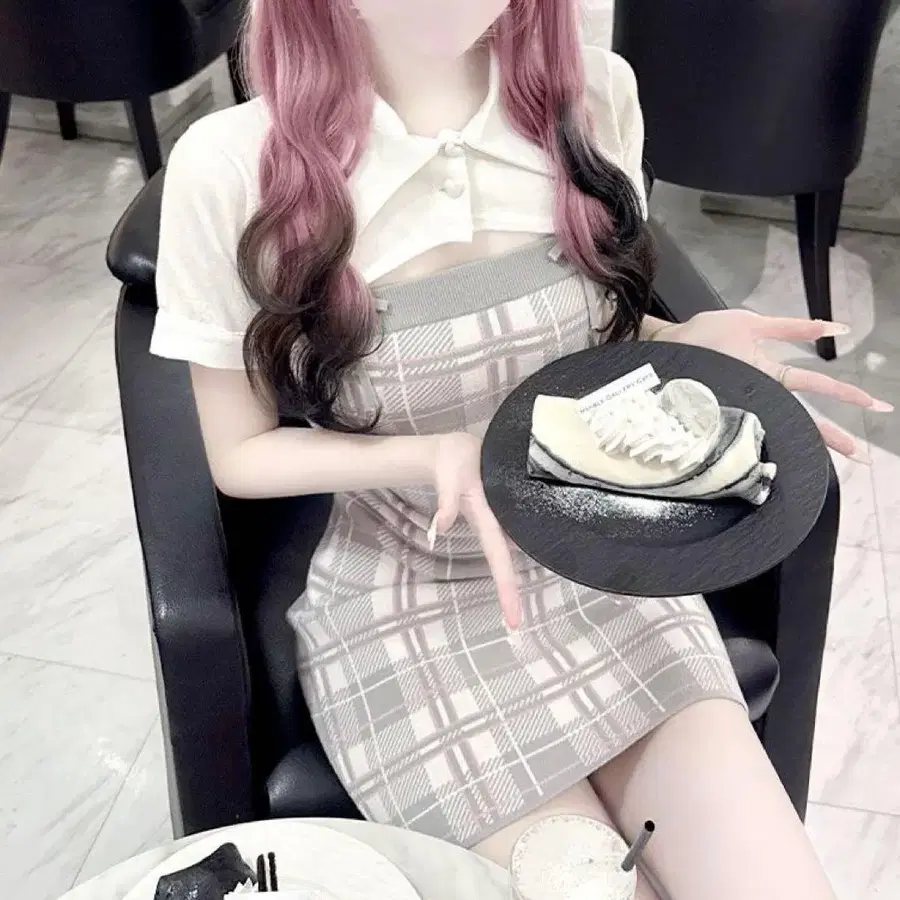 허니뮤우 체크 앙상블 원피스