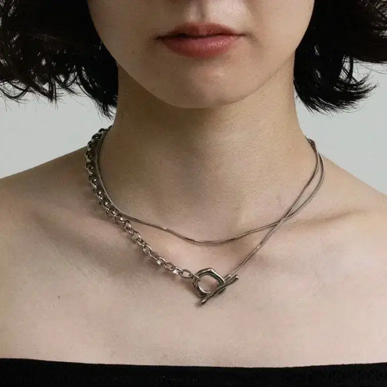• B86 실버 컬러 오벌 펜던트 목걸이