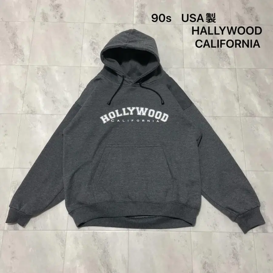 90s 미국제 HALLYWOOD CALIFORNIA 할리우드 SWEAT HOODIE 맨투맨 후드티 긴팔 프린트 로고 수베니어 영화 아메카지 미국제 90년대 빅 로고 그레이 사이즈 L玉na1589