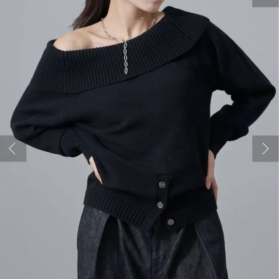 데콜테를 예쁘게 보여주는 여성스럽고, 가을/겨울 시즌에도 딱 맞는 돋보이는 니트.