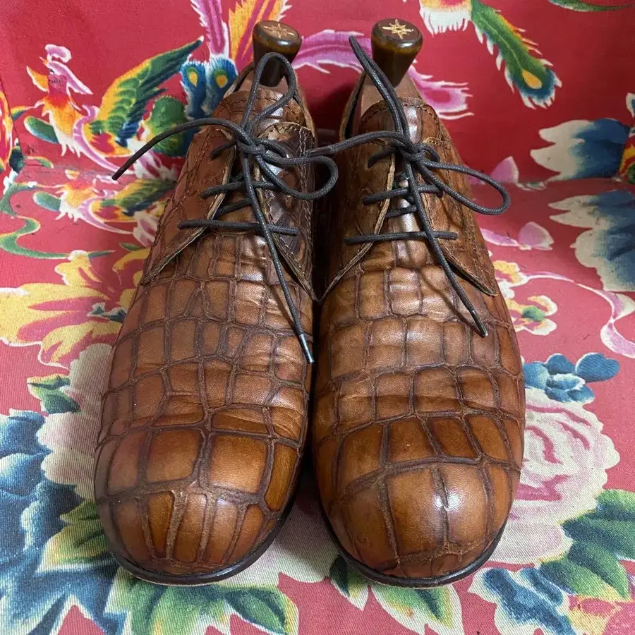 컬렉션 프리베의 엠보 가죽 둥근 코 구두입니다.