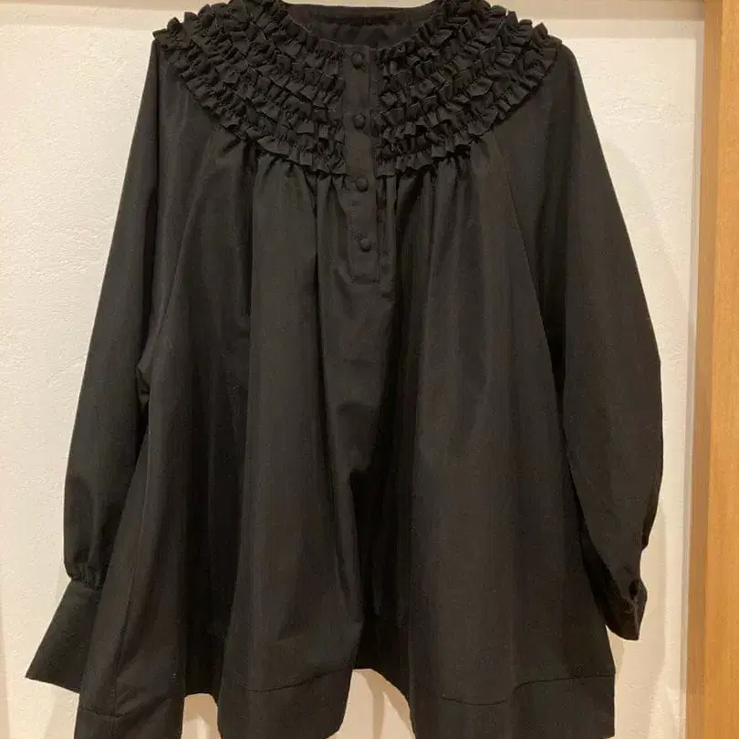 Fit more 미니 프릴 칼라 플레어 블라우스 블랙