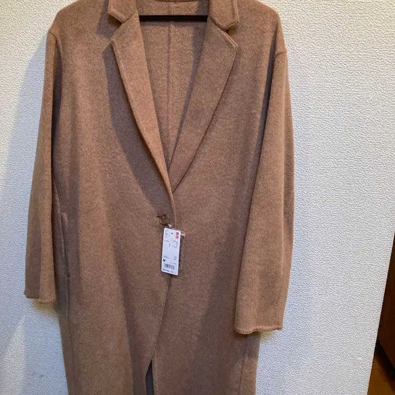 유니클로 더블 페이스 코쿤 코트 울 혼방 베이지 M