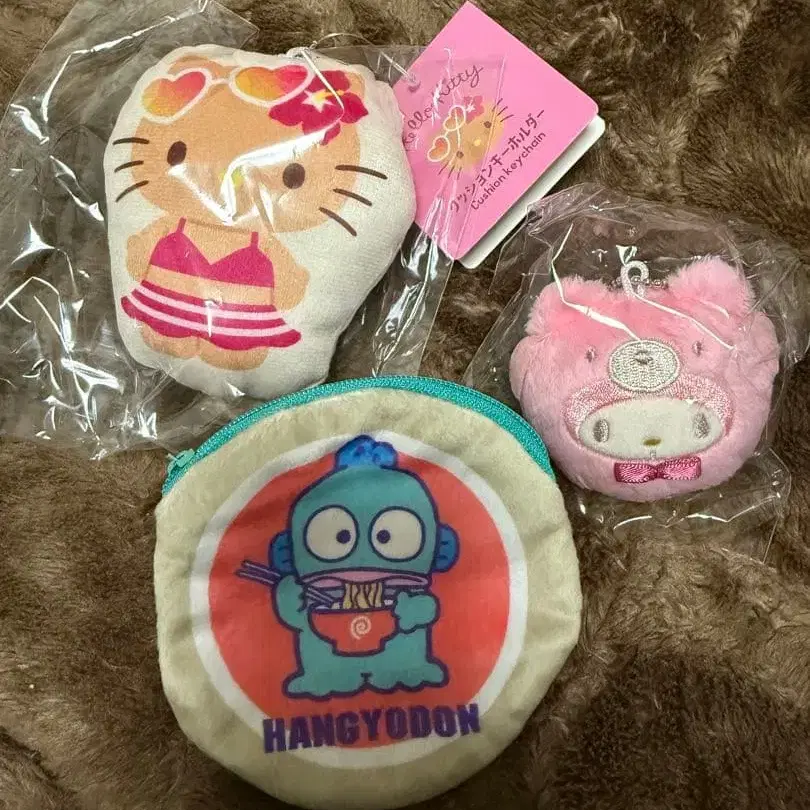 산리오 캐릭터 봉제 인형과 파우치 세트