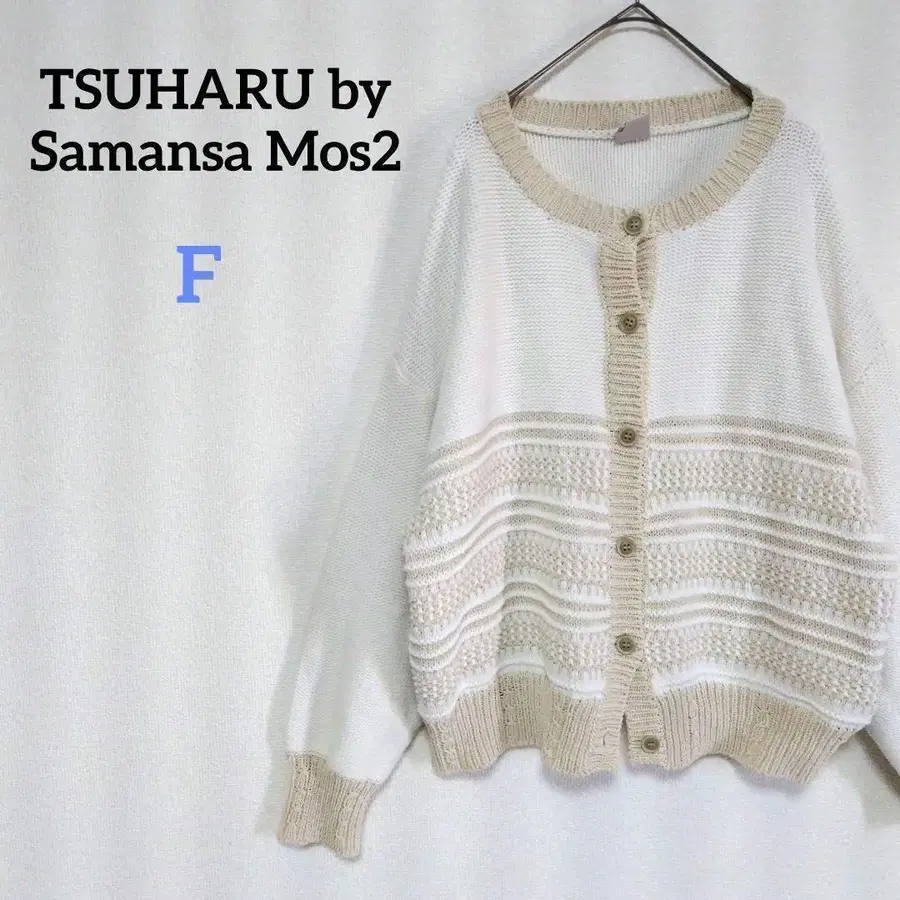 츠하루 바이 사만사 모스모스 코드사 패턴 편직 가디건 겉옷 니트 보더