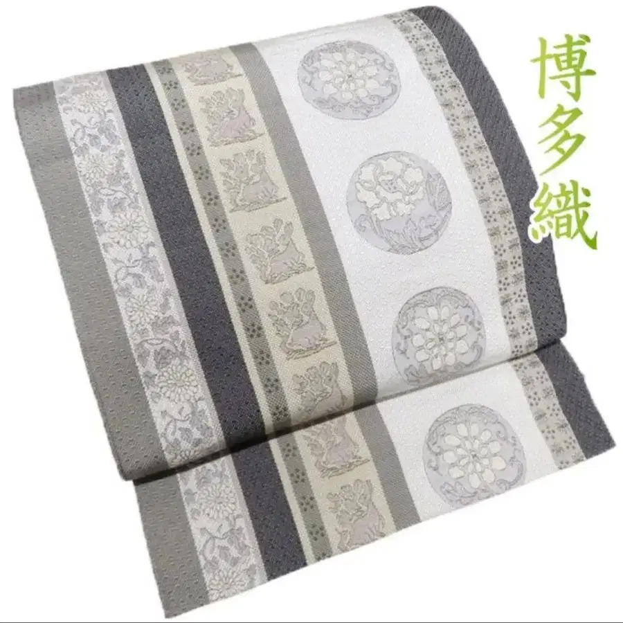 하카타 오리 나고야 오비 명물직 송엽 마감 순수 실크