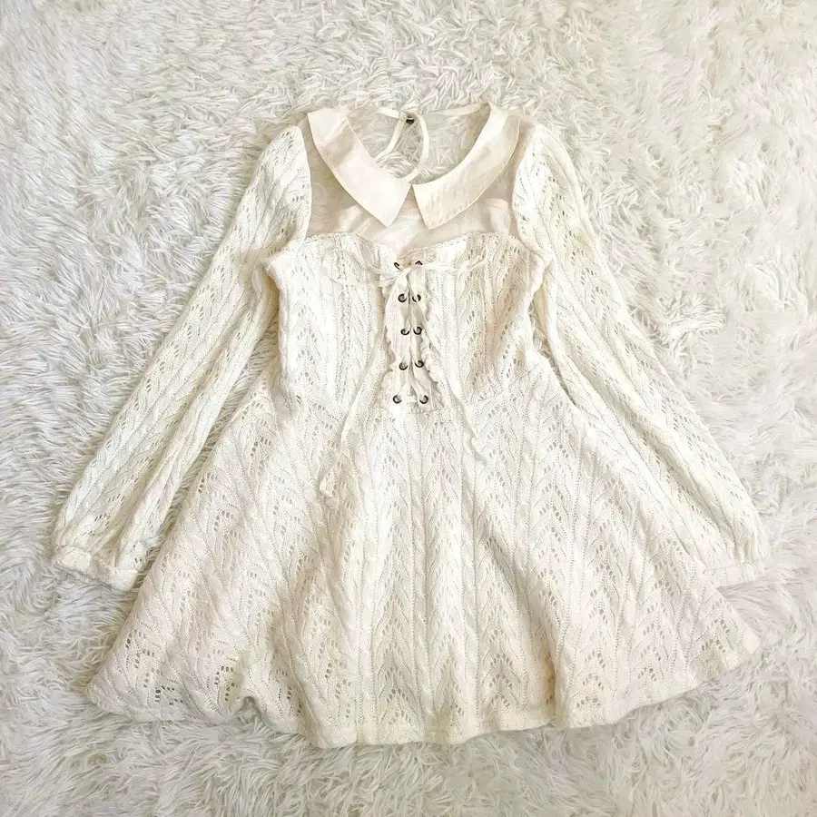 [레어] 리즈리사 니트 원피스 미니 화이트 헤이세이 갸루 y2k